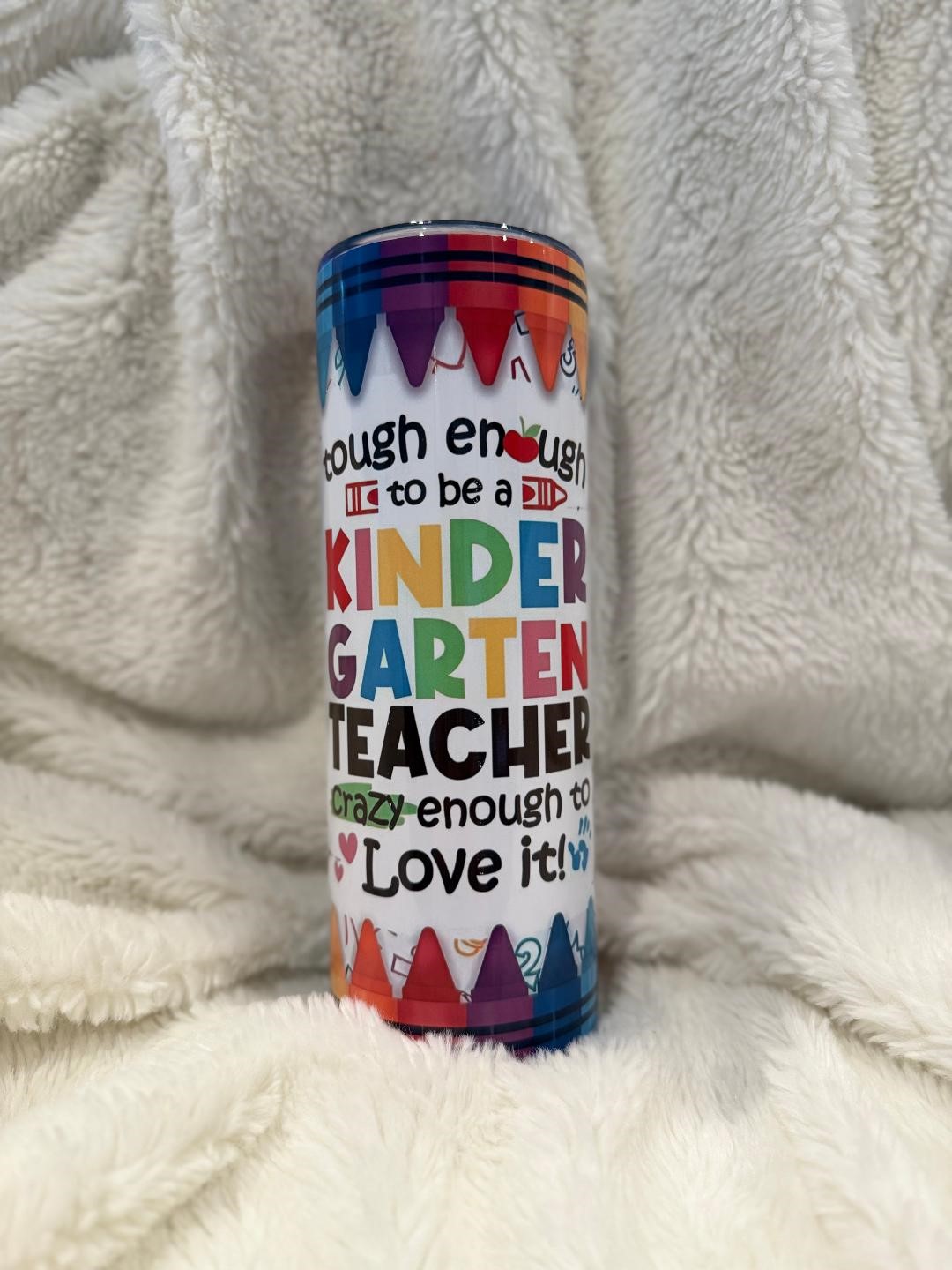 Teaching kindergarten takes patience, energy, and a whole lot of love—and this tumbler celebrates just that. With a fun, bold design that proudly states “Kindergarten Teacher Crazy Enough To Love It”, it’s the perfect companion for every dedicated teacher who pours their heart into little learners every single day.